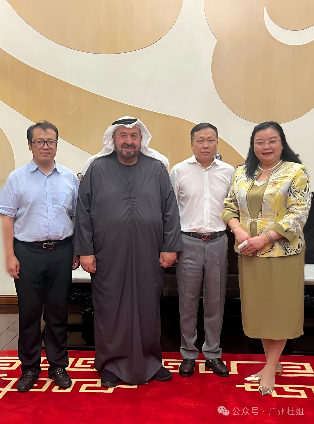 交流期间,中国联合国采购促进会荣誉会长李先生、会长王先生、以及全球经贸文化对接平台杜女士、阿拉伯国际投资者论坛萨巴赫先生合影留念。