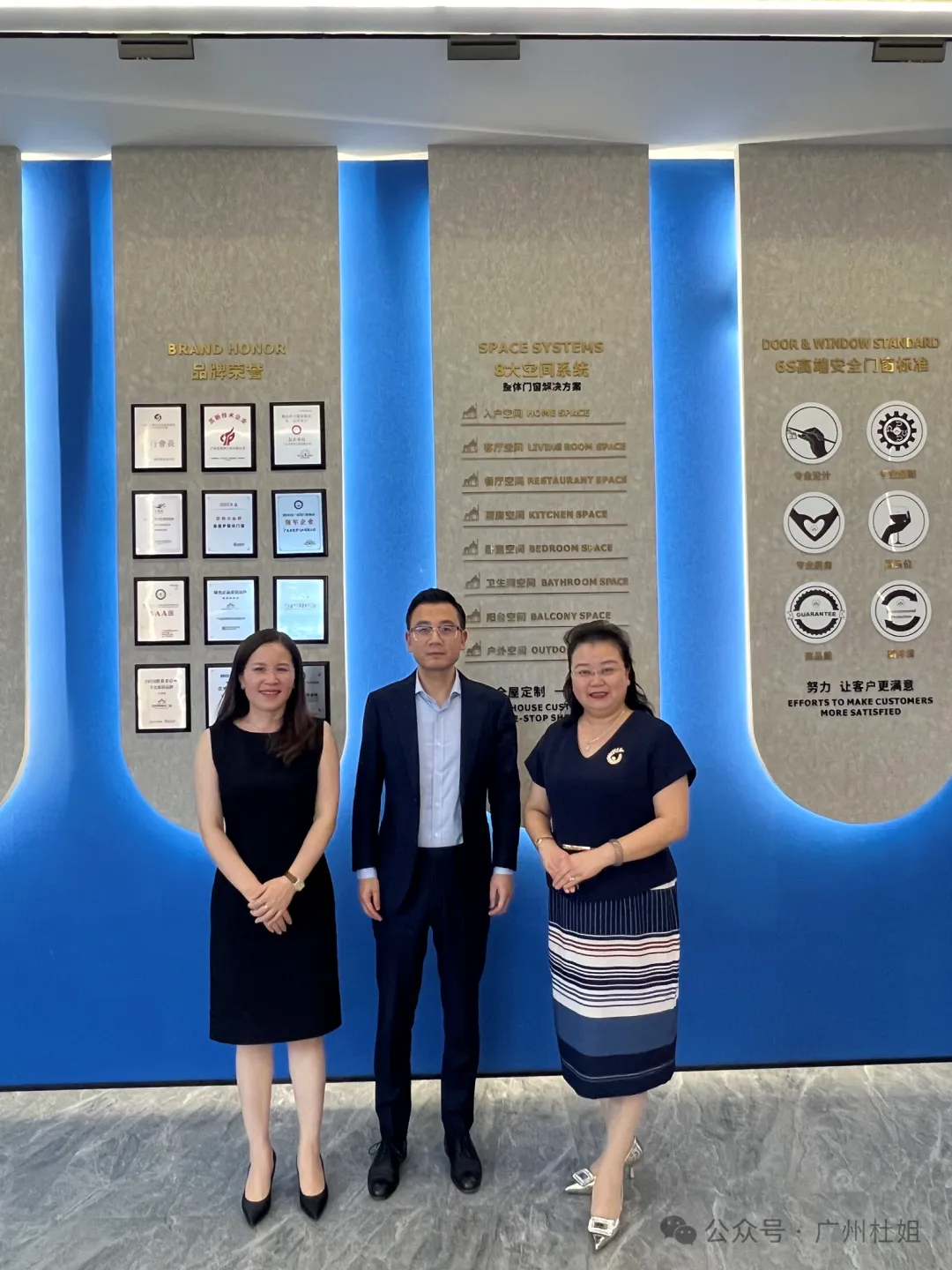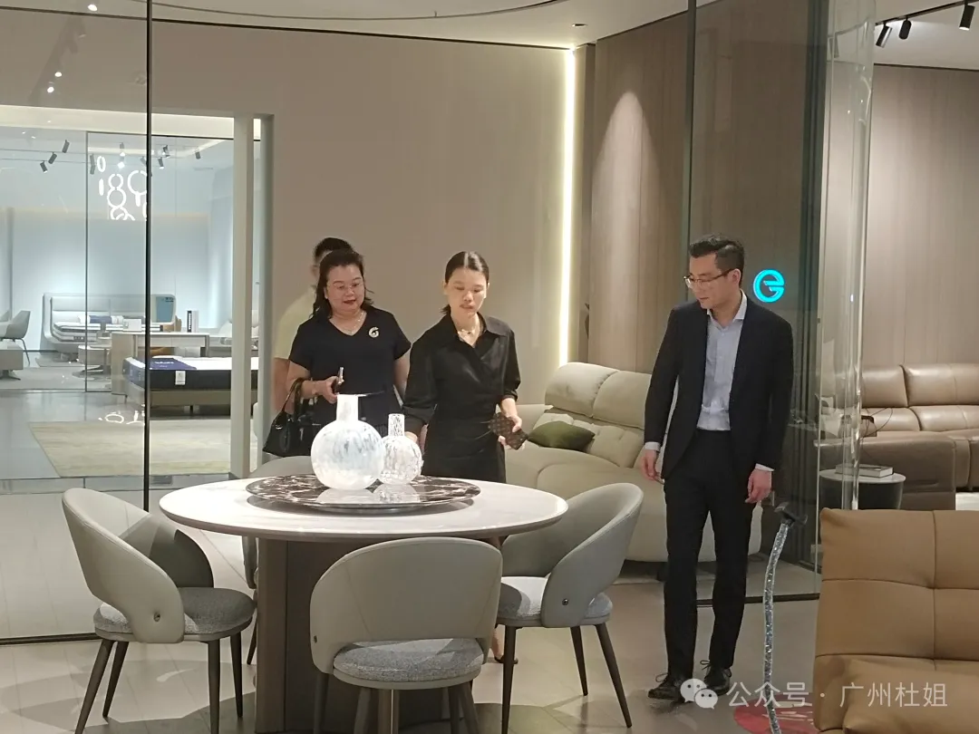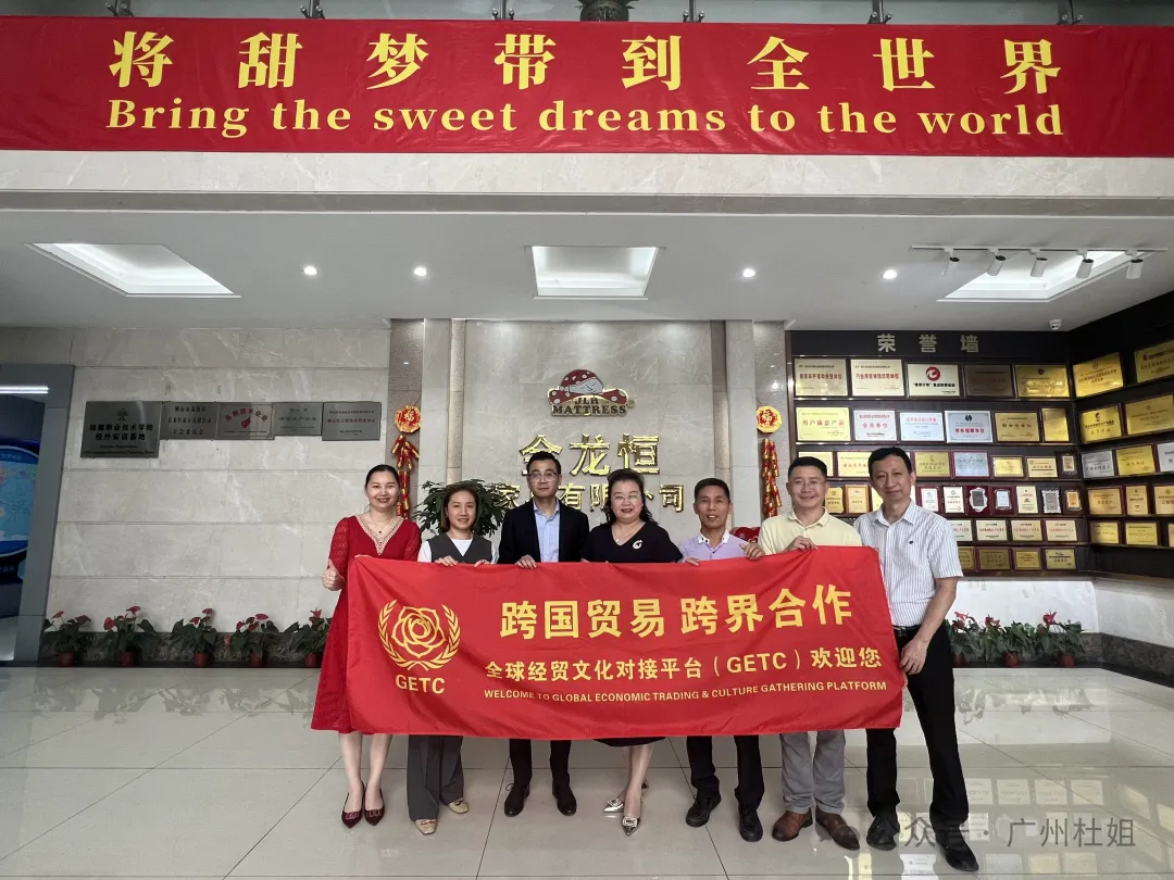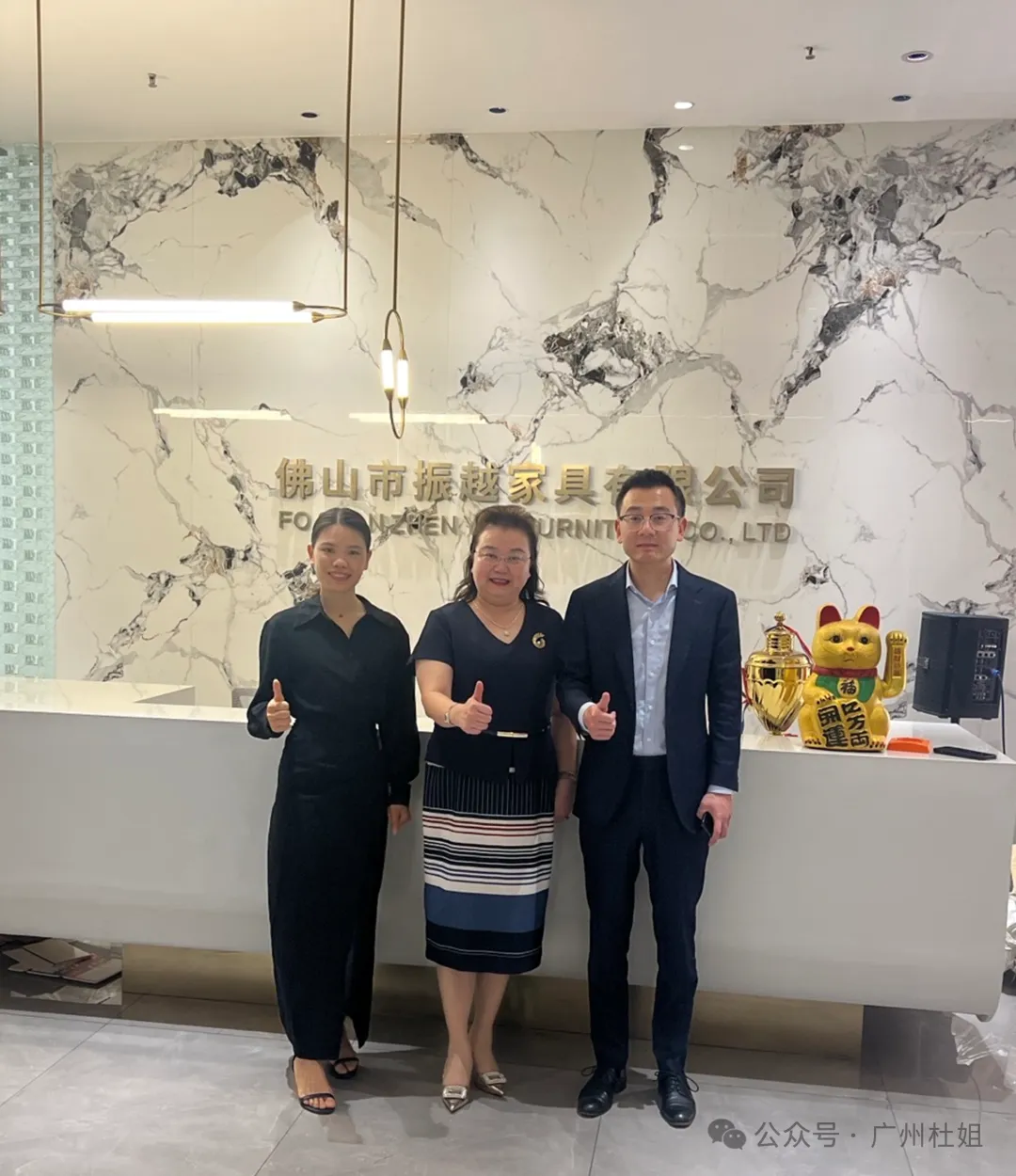 下图:考察GETC副会长单位、佛山市连平商会执行会长单位:佛山市振越家具有限公司。振越公司以全球同步设计并制造新颖、时尚的家具为经营方向,为家具界的数百家经销商提供质量上乘,性价比优越的各式家具。董事长李伟兴及夫人马娇女士更是携手让振越家具总是成为各家具展会上最闪耀的展示明星和成交明星。