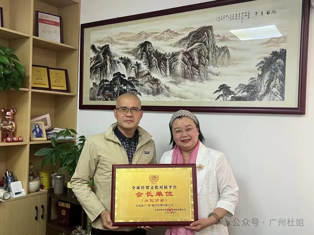 GETC从化分会会长、幸福港(广州)餐饮有限公司董事长叶辰先生与GETC创始人杜健华女士合影。