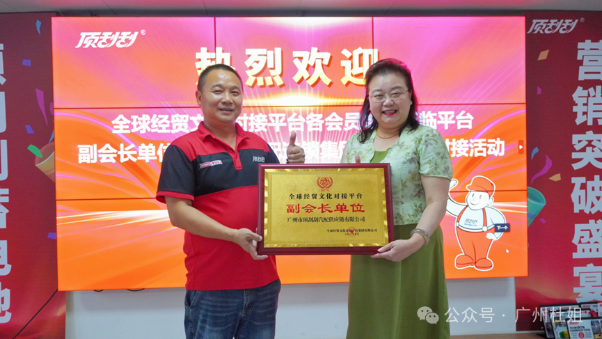 全球经贸文化对接平台感恩大型汽配连锁集团:顶刮刮集团对平台的大力支持,7月19日,我们走进了顶刮刮集团,举行了副会长单位授牌仪式。