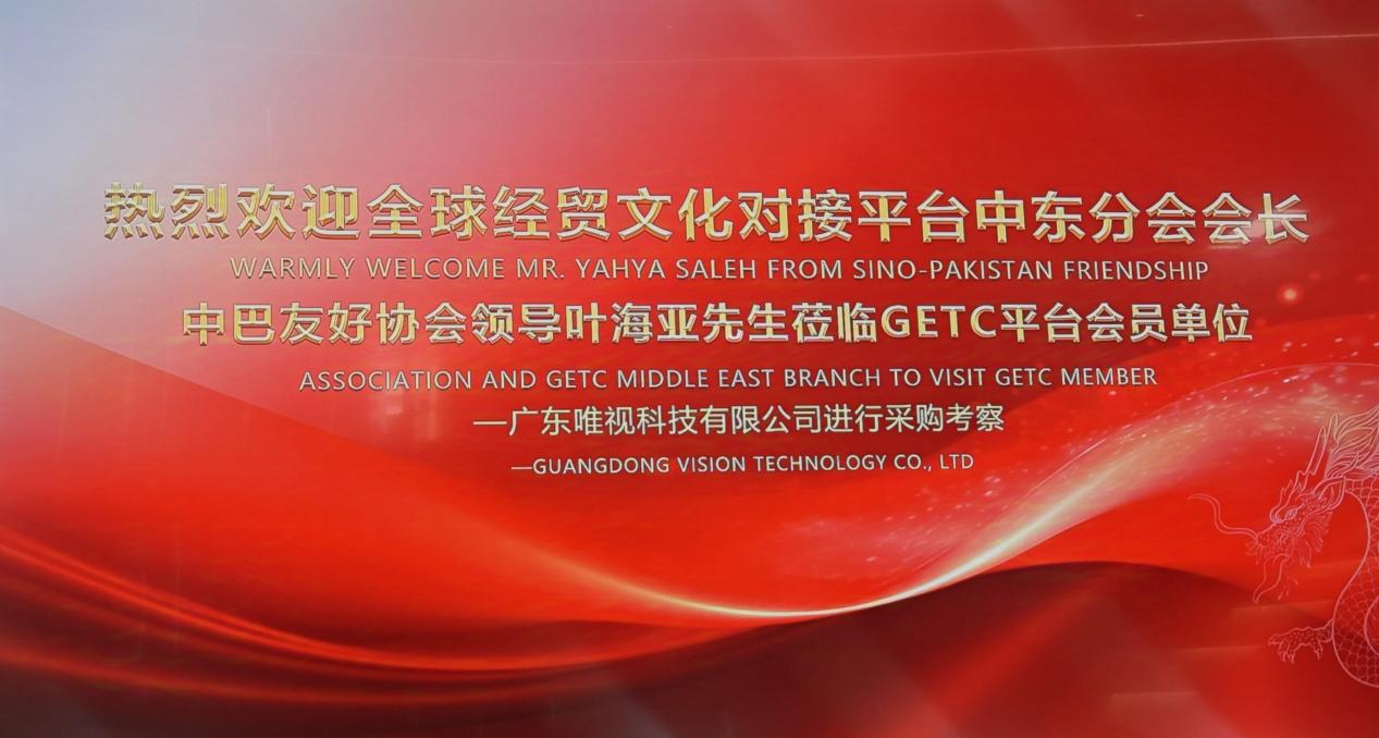 2024年11月12日,全球经贸文化对接平台(GETC)引荐来自中东的采购商到访平台会员单位——广东唯视科技有限公司,为全球经贸文化对接平台(GETC)会员做精准的海外采购业务对接。广东唯视科技有限公司领导一行人对外商的到来热烈欢迎。