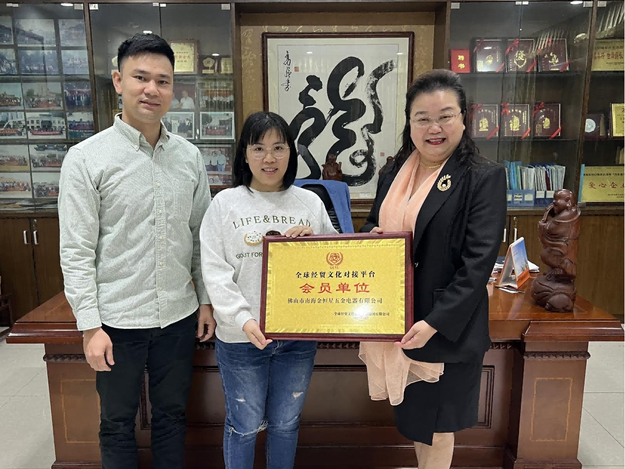 2024年11月21日,全球经贸文化对接平台(GETC)创始人杜健华女士带领团队到访优秀老字号企业“金恒星五金电器有限公司”,并进行平台会员的授牌。金恒星郭董事长及其高管团队热烈欢迎GETC团队的到来。